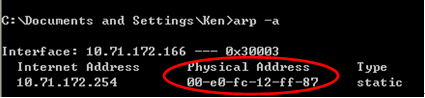 arp -s 10.71.172.166 00-e0-fc-12-ff-87