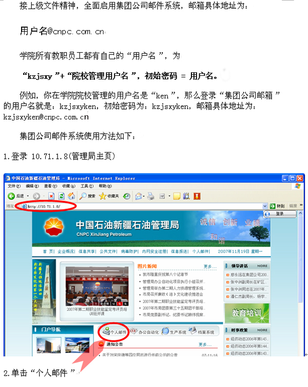 学院教职工使用管理局邮件系统的方法