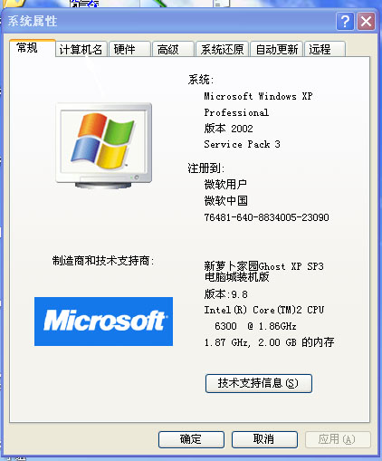 打开“系统属性”选项卡界面 如下: