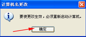 弹出“计算机名更改”对话框 单击“确定” 启动计算机。(注意计算机名必须启动计算机才能改,否则不会更改)